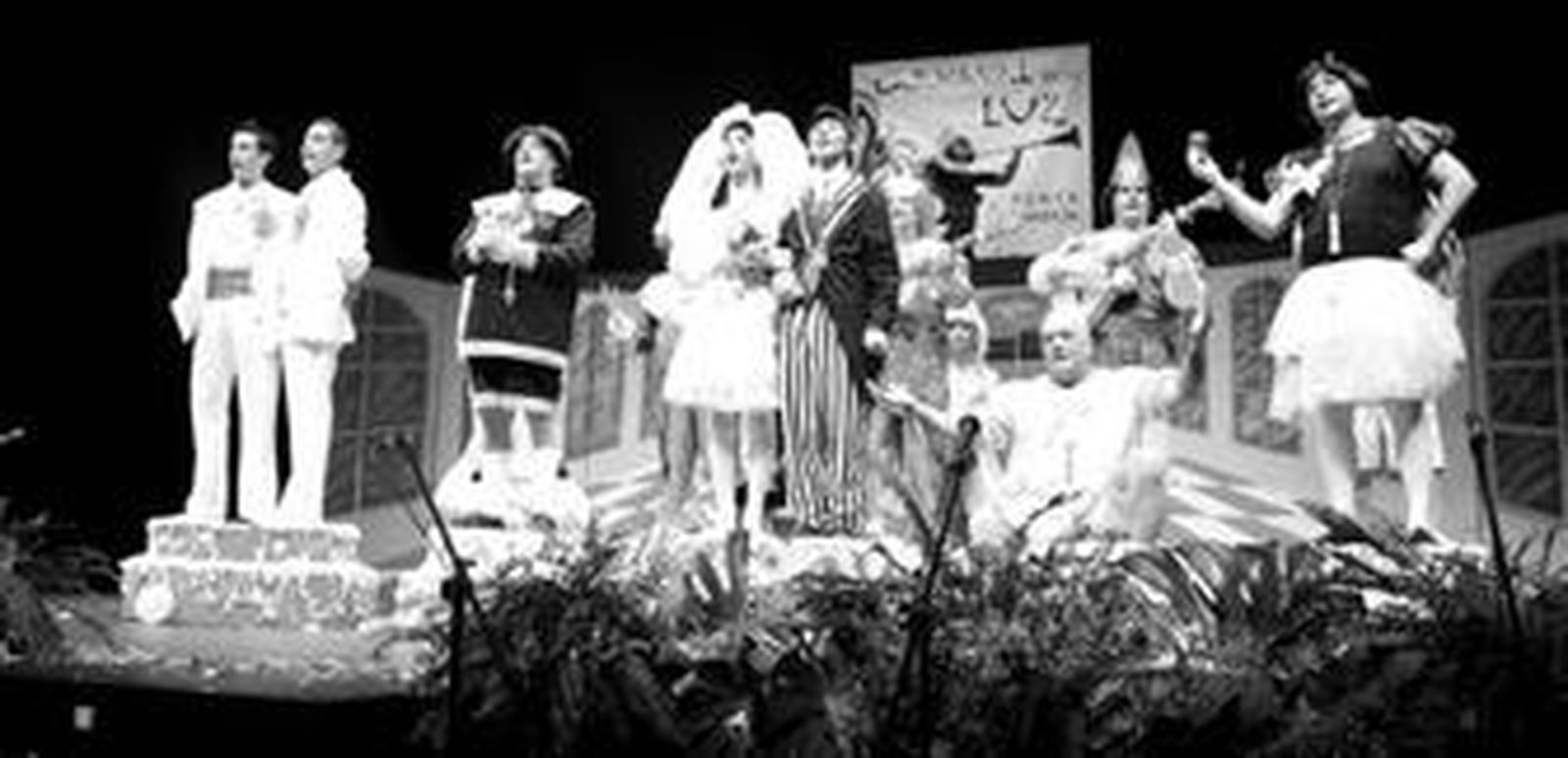 Empezó la noche con 'Los empresarios de la otra orilla', de Huelva. Una chirigota que trajeron a los personajes de la película 'Piratas del Caribe'. Después subió a las tablas la comparsa 'Papalote', de la Peña Pedro Gil Mazo, que volvió a cantar unas letras muy sentidas de la mano de Enrique Orta, que en esta ocasión dirige un grupo más desenfadado que en años anteriores. El propio y auténtico 'Papalote' salió con ellos subido a unos zancos.