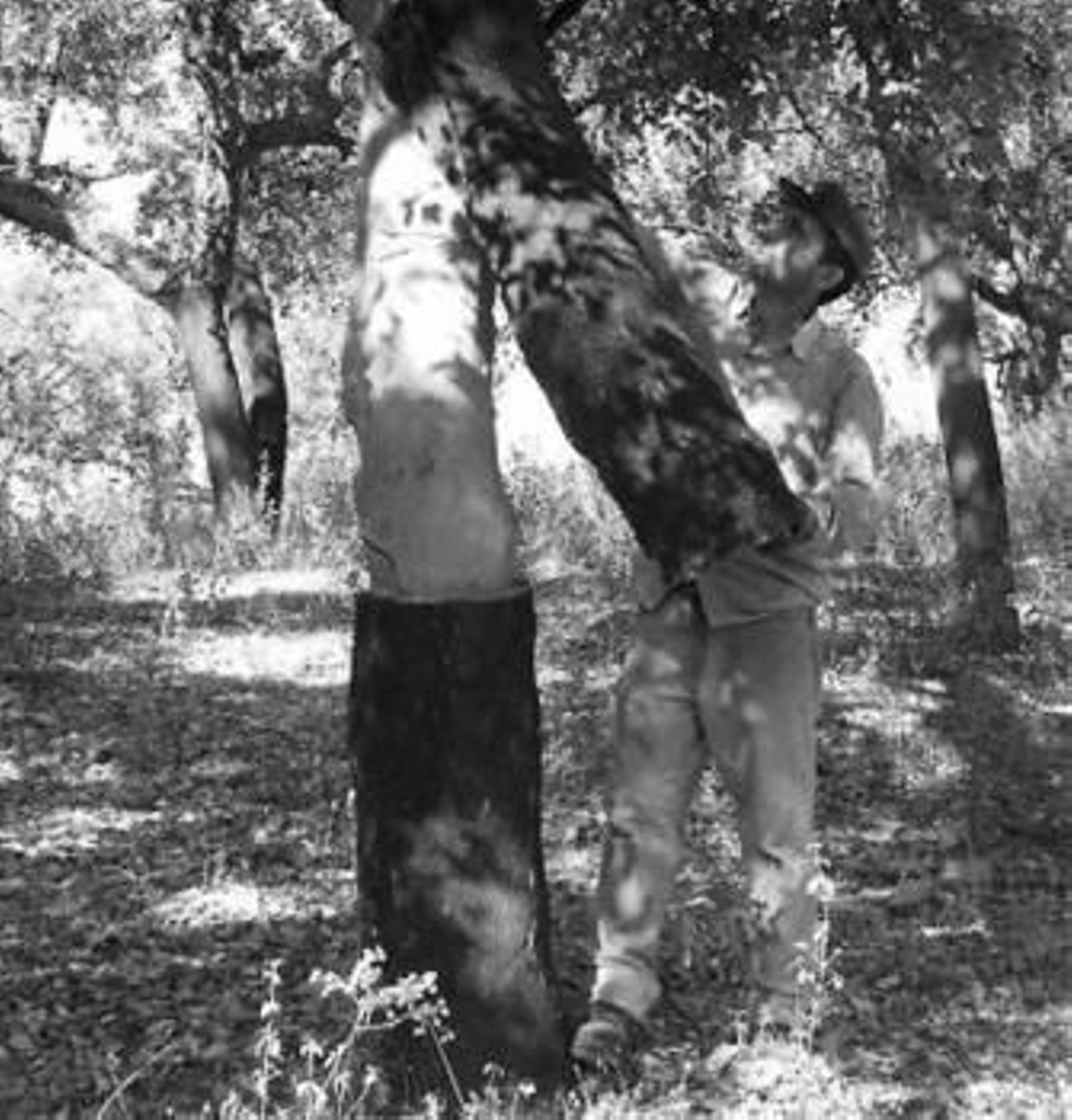 La extracción del corcho es una de las tareas más antiguas que se unen al bosque mediterráneo, y el aprovechamiento de esta materia es una de las razones que han hecho posible el mantenimiento del alcornocal hasta nuestros días. La saca cíclica de la corteza permite el crecimiento saludable de los alcornoques a lo largo de su vida, que dura entre 150 y 200 años.