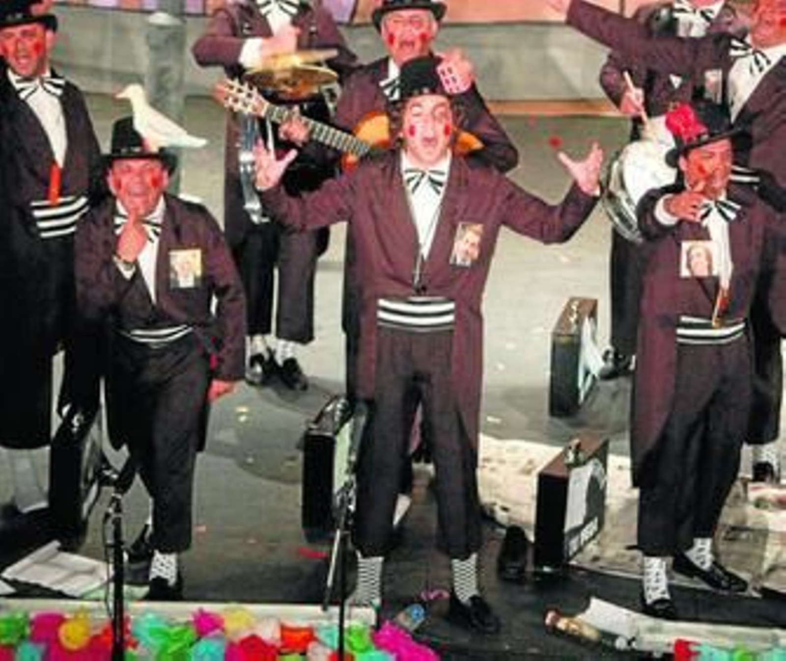 Los alcaldables isleños centraron el primer pasodoble de esta chirigota, a la que siguió otro en que arremetían contra los que critican su estilo de hacer carnaval. El cuplé más brillante de estos murguistas fue uno de última hora dedicado al pasodoble a la Reina que cantó la comparsa de Tubito en preliminares, cuando apenas se acordaron de la letra. El segundo, al carril bici, con comparativa de la alcaldesa, María Luisa Faneca, con la esposa de Paco González.