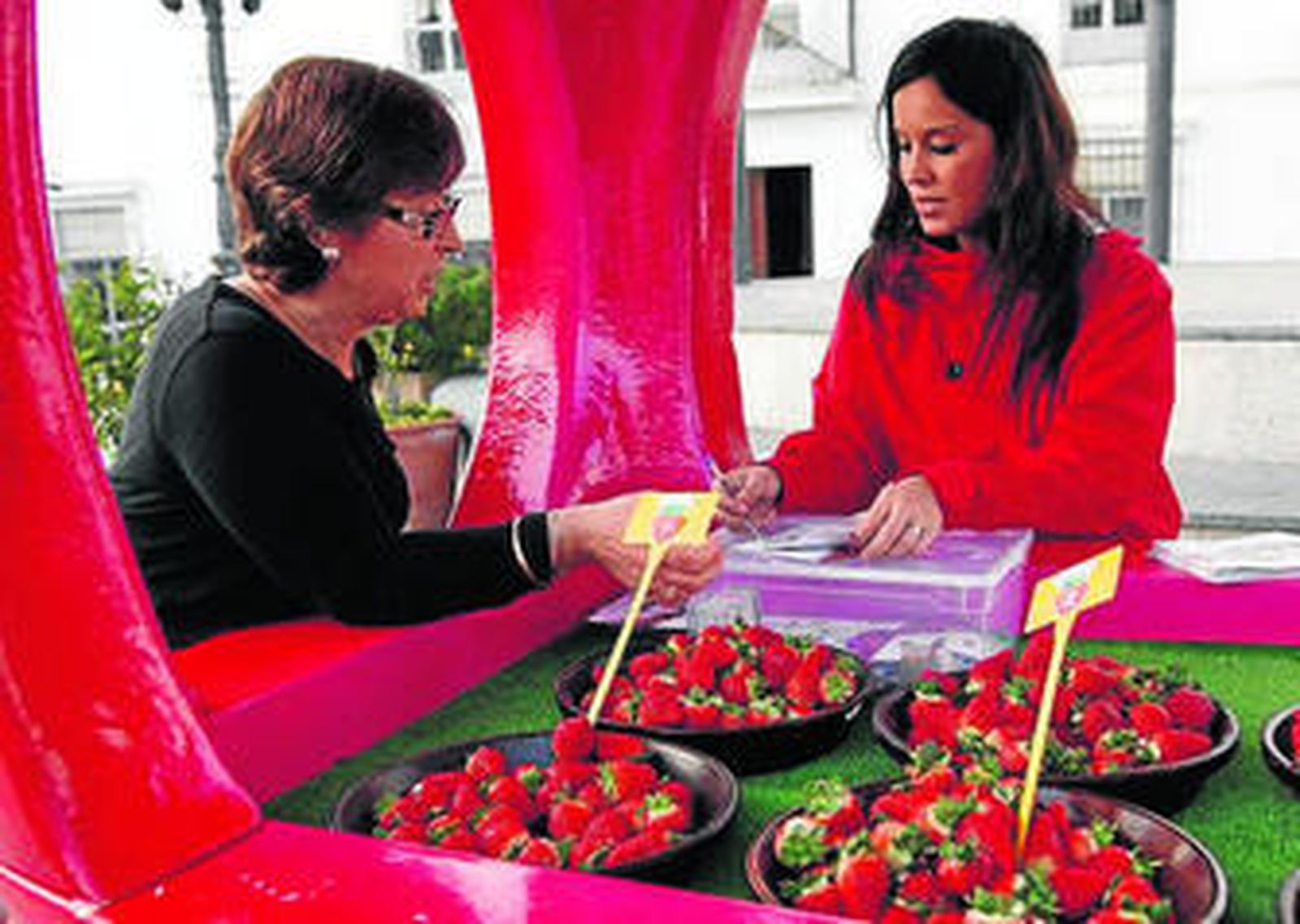 Una curiosa forma de promocionar y elegir las mejores fresas por parte de los mayores expertos en esta delicia culinaria típicamente onubense como son los ciudadanos de los pueblos productores de nuestra provincia. Este es el caso de Cartaya, cuya plaza redonda se tiñó literalmente con el rojo de las mejores fresas de la variedad san andreas.