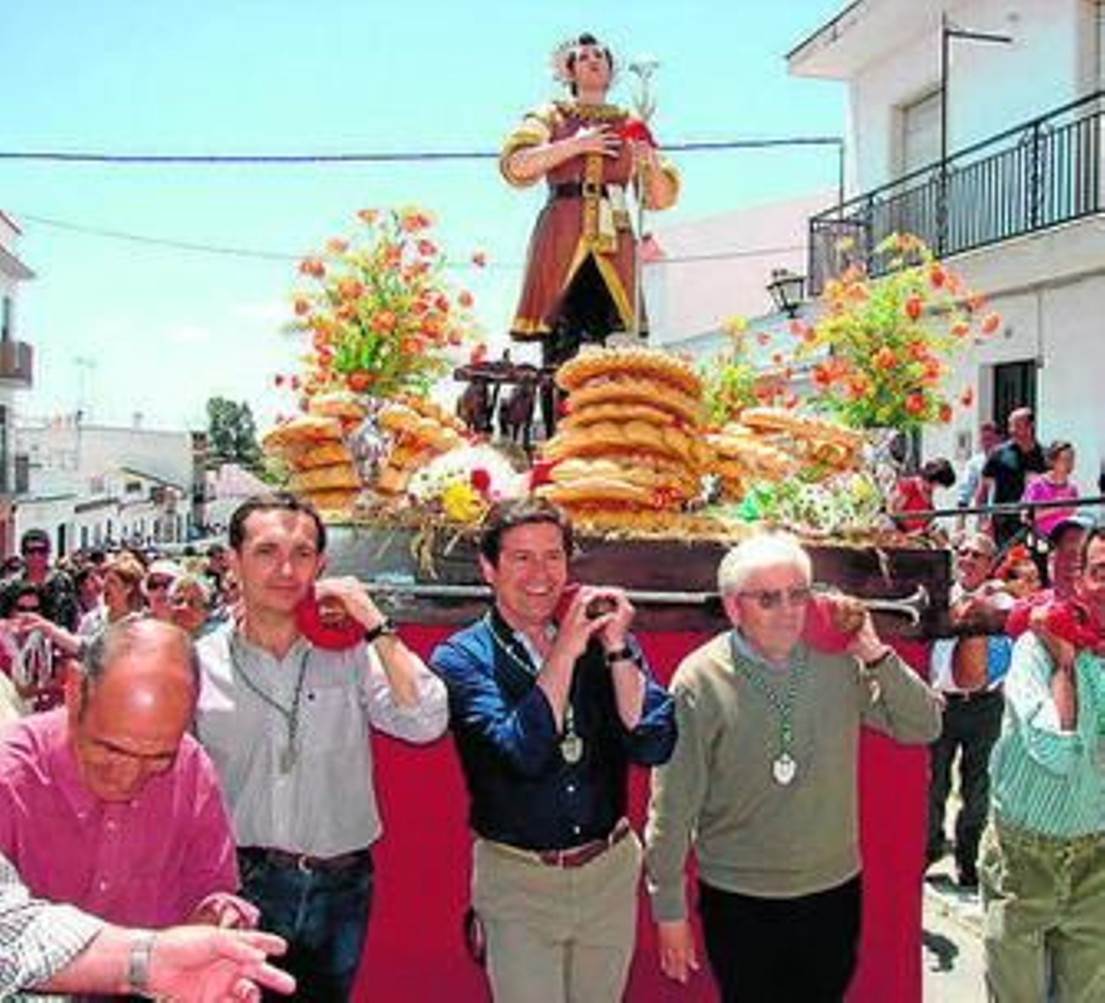 La Hermandad de San Isidro, que celebró el año pasado su 25 Aniversario, recorre durante este fin de semana cada rincón del municipio, el Santo se para en la puerta de todo aquel que desee entregar su rosca de pan, en cada balcón donde se lanzan las tiradas y en la casa de todos los vecinos que abren sus puertas para dar un refresco.