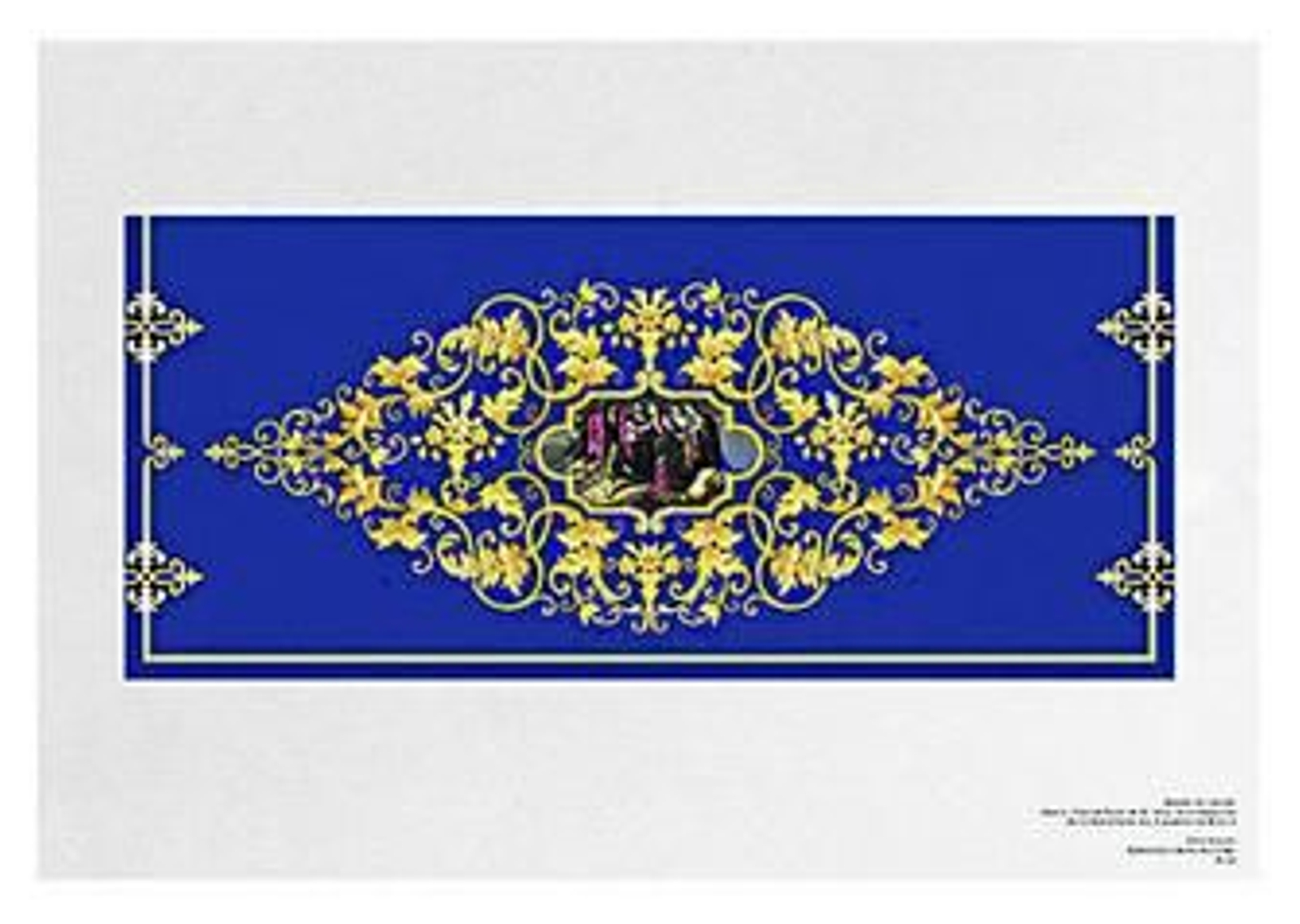 Toda la obra, tanto manto como el referido conjunto de faldones, se encuentra concebida para ser bordada en oro fino a realce sobre un fondo de soporte textil de rico terciopelo de color azul para el caso del manto, como es característico en el palio de la Virgen de la Amargura. Añadiéndose un juego de cartelas en sedas de colores para el caso de los faldones, quedando a cargo para su elaboración en el taller de Jesús Rosado Borja, en Écija (Sevilla).