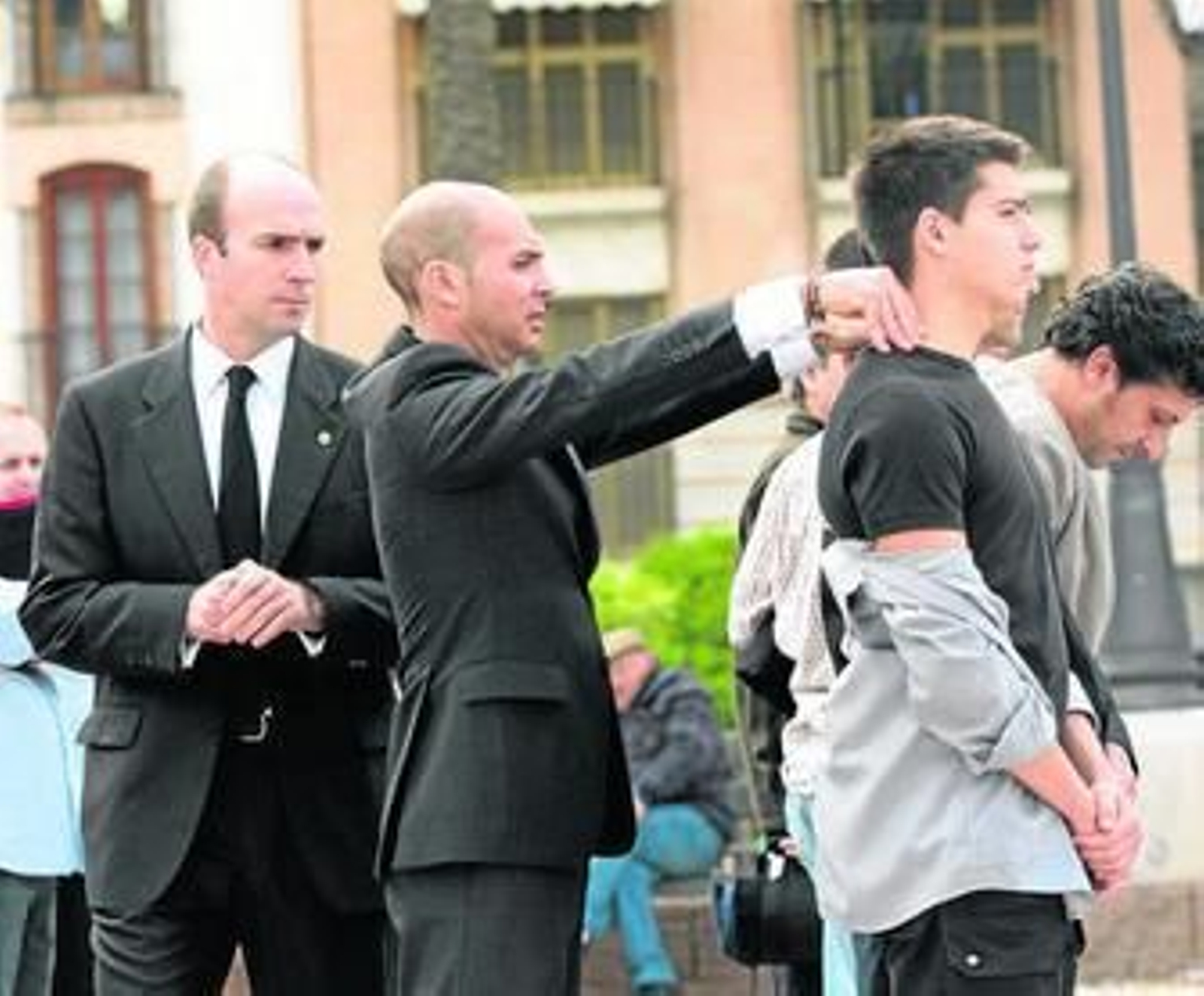 A media hora de la salida de la cofradía, el capataz, Manuel Asuero Espín, igualaba su cuadrilla en la Plaza de la Merced. Luego todo se volvería sobriedad. En ese impás de espera de un publico fiel a esta cofradía, que no de multitudes. Algunos pequeños en la espera de la cofradía piensan qué paso saldría, si la cena el Nazareno, pero vieron que no, que era el Señor muerto y dijeron: "Sí pero luego revive". Con esta sencillez los niños demostraban así el valor catequético que tienen las cofradías en la calle. Lo que ven, le dicen sus padres y van aprendiendo con una bola de cera. Así es la Semana Santa para los más pequeños.