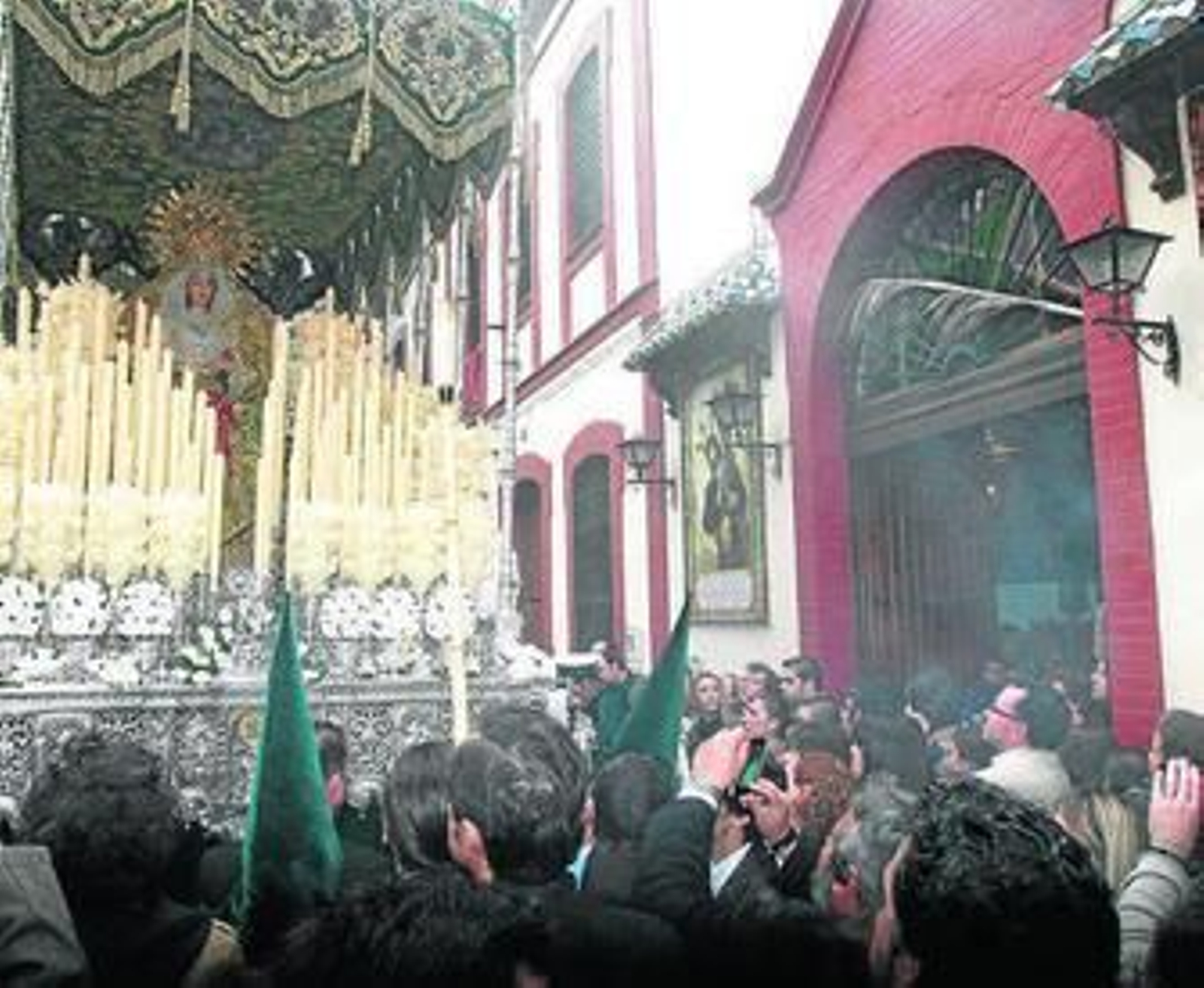 Era un poco antes de las 20:00 cuando Esperanza Coronada llegó al Hotel Tartessos. No solo ese lugar sino todo el centro de la capital ya era una inmensa alfombra de gente que comprimía, en algunos momentos, a la propia cofradía de San Francisco.