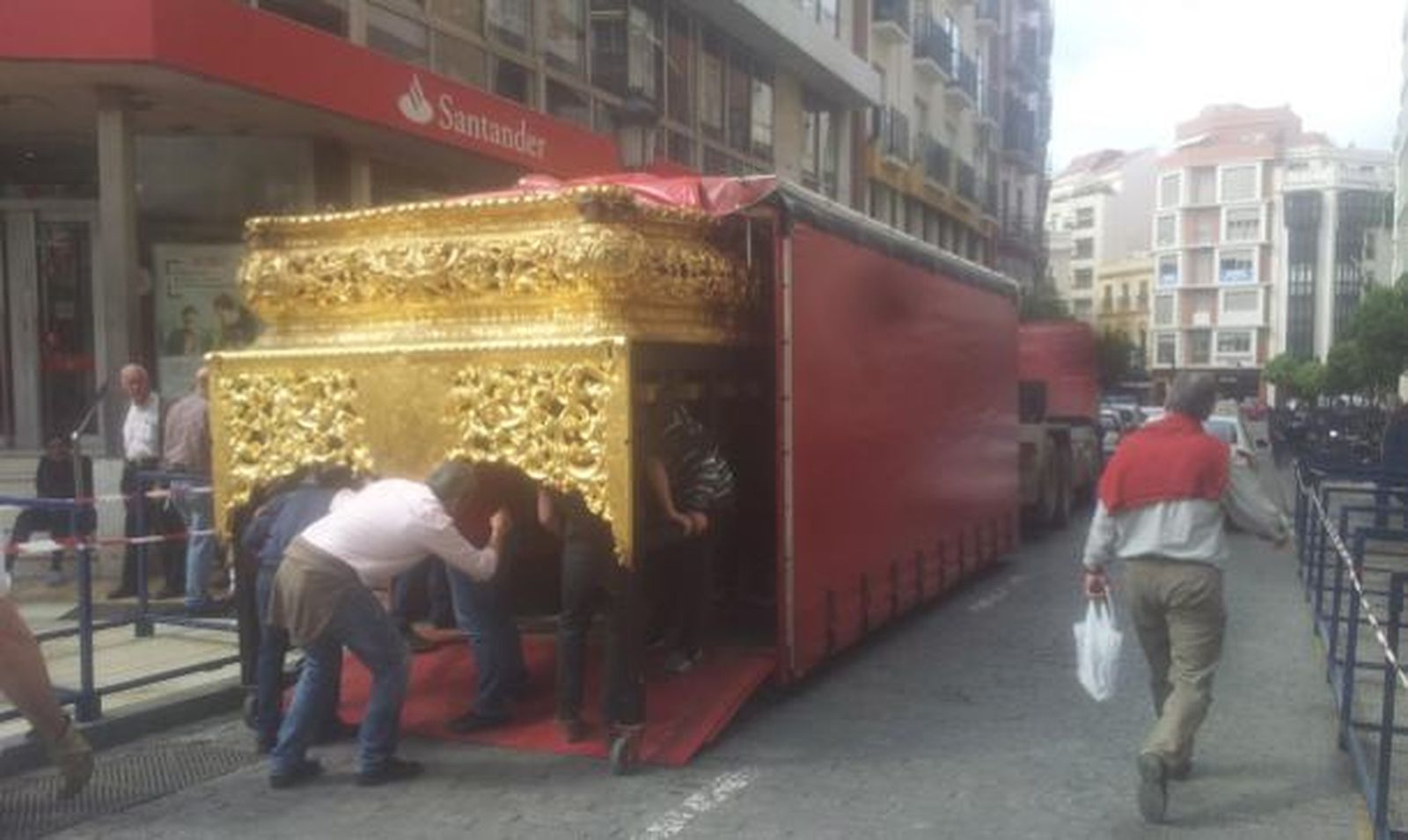 Se tuvo que montar todo un dispositivo especial que escoltó desde la entrada de la ciduad al camión que lo traía desde Córdoba donde se ha realizado la nueva parihuela.