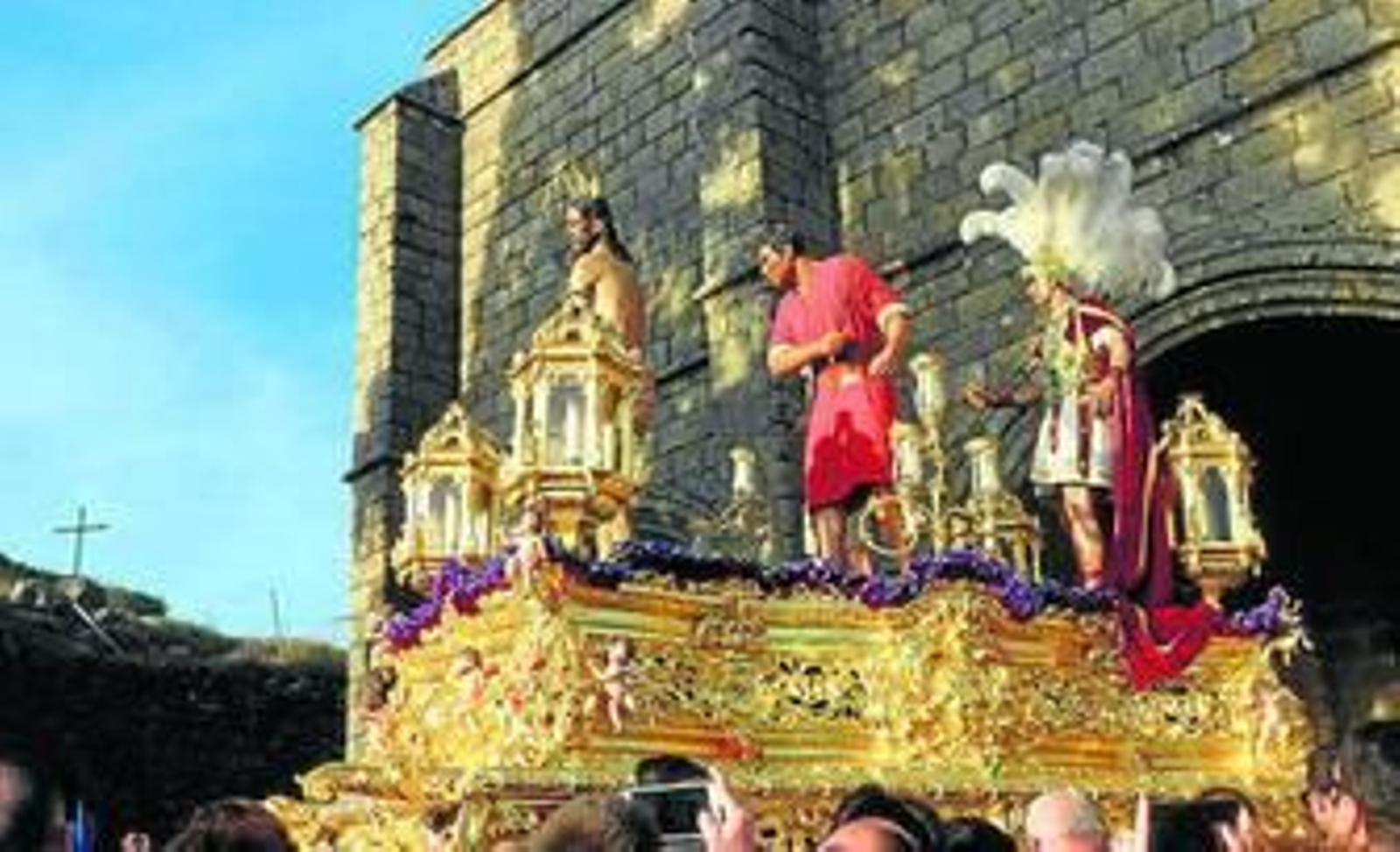 Destacó la salida del Castillo, bajada hacia Plaza Alta y entrada y salida en la parroquia, paso por el paseo y luego entrada con muchas personas en el interior del templo en la entrada.