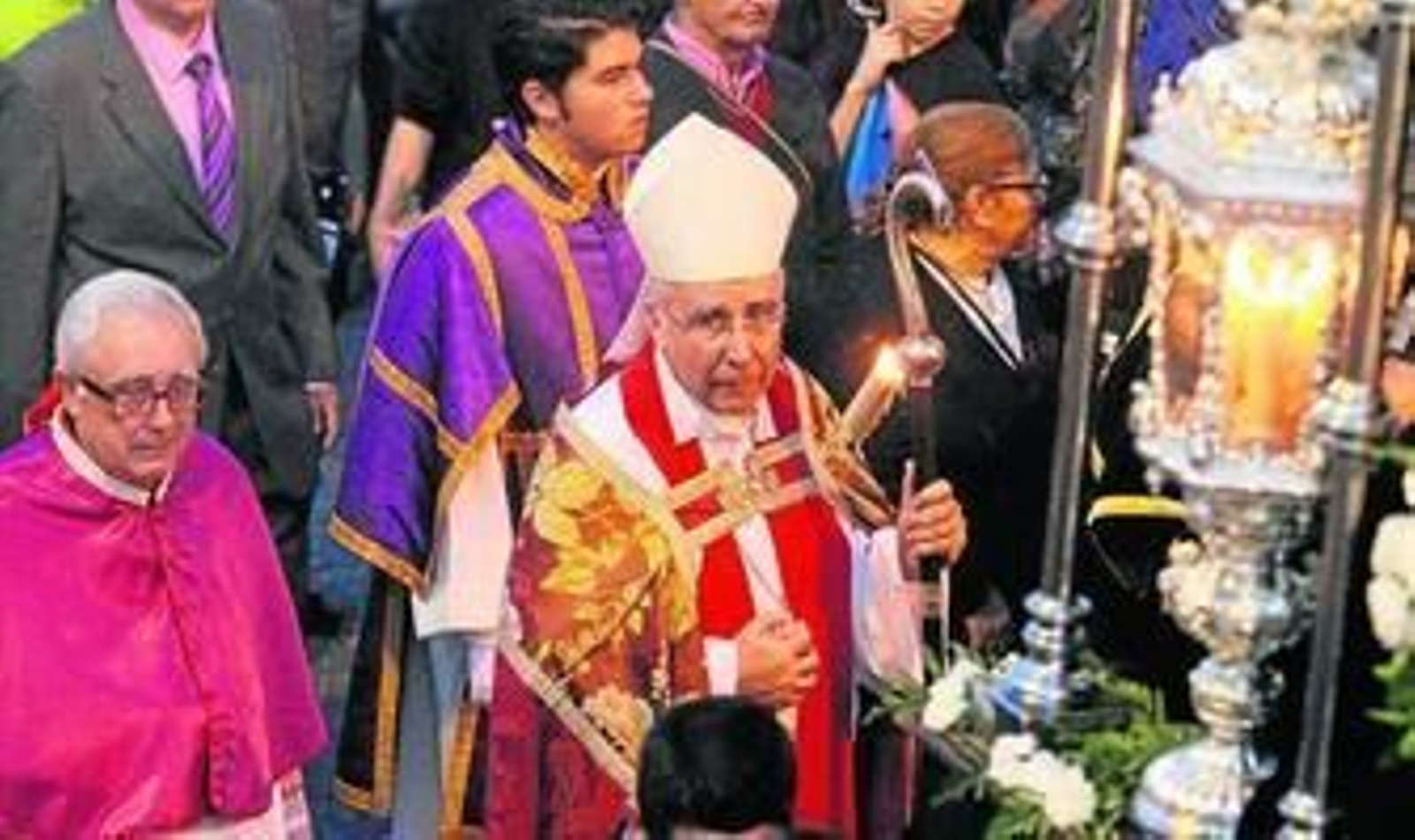 Tras el paso de palio de la Soledad de María, se situaba el obispo de la diócesis, José Vilaplana acompañado de José Arturo Domínguez y Víctor Manuel Bermúdez.