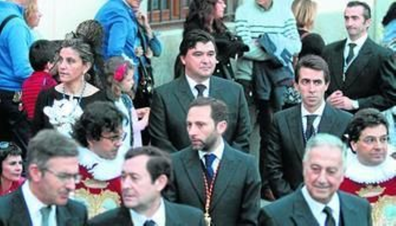 Tras el paso del Señor Yacente, representantes de las Fuerzas de Seguridad del Estado, el subdelegado del Gobierno, una delegación de la Universidad de Huelva -con su rector-, un representante de la Diputación, el presidente de la Audiencia Provincial, concejales del Grupo Municipal Socialista y el alcalde junto a su equipo de Gobierno.