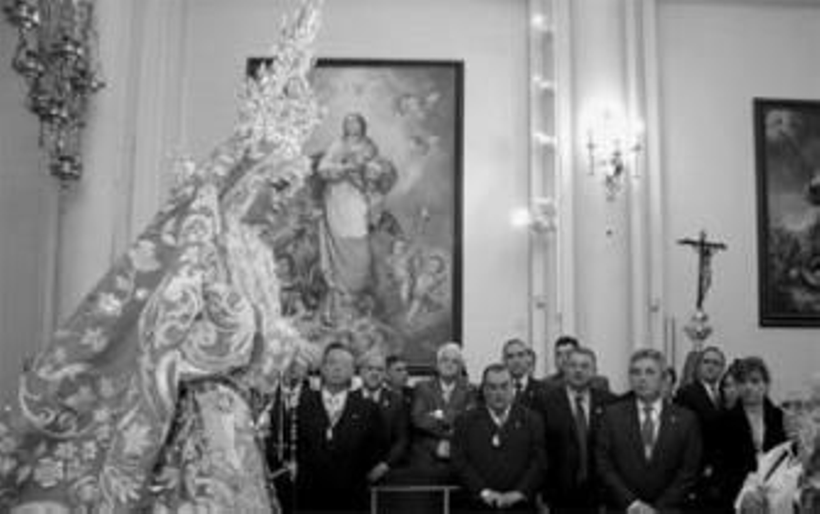 Parte del equipo de bordadoras estuvo presente en la bendición del manto. Hoy tendrá lugar en la casa hermandad, a partir de las ocho y media de la tarde, un acto homenaje al taller de bordado.